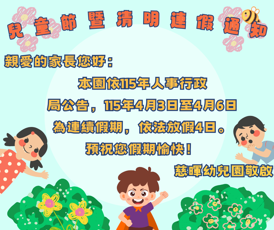 115年兒童節暨清明連假通知