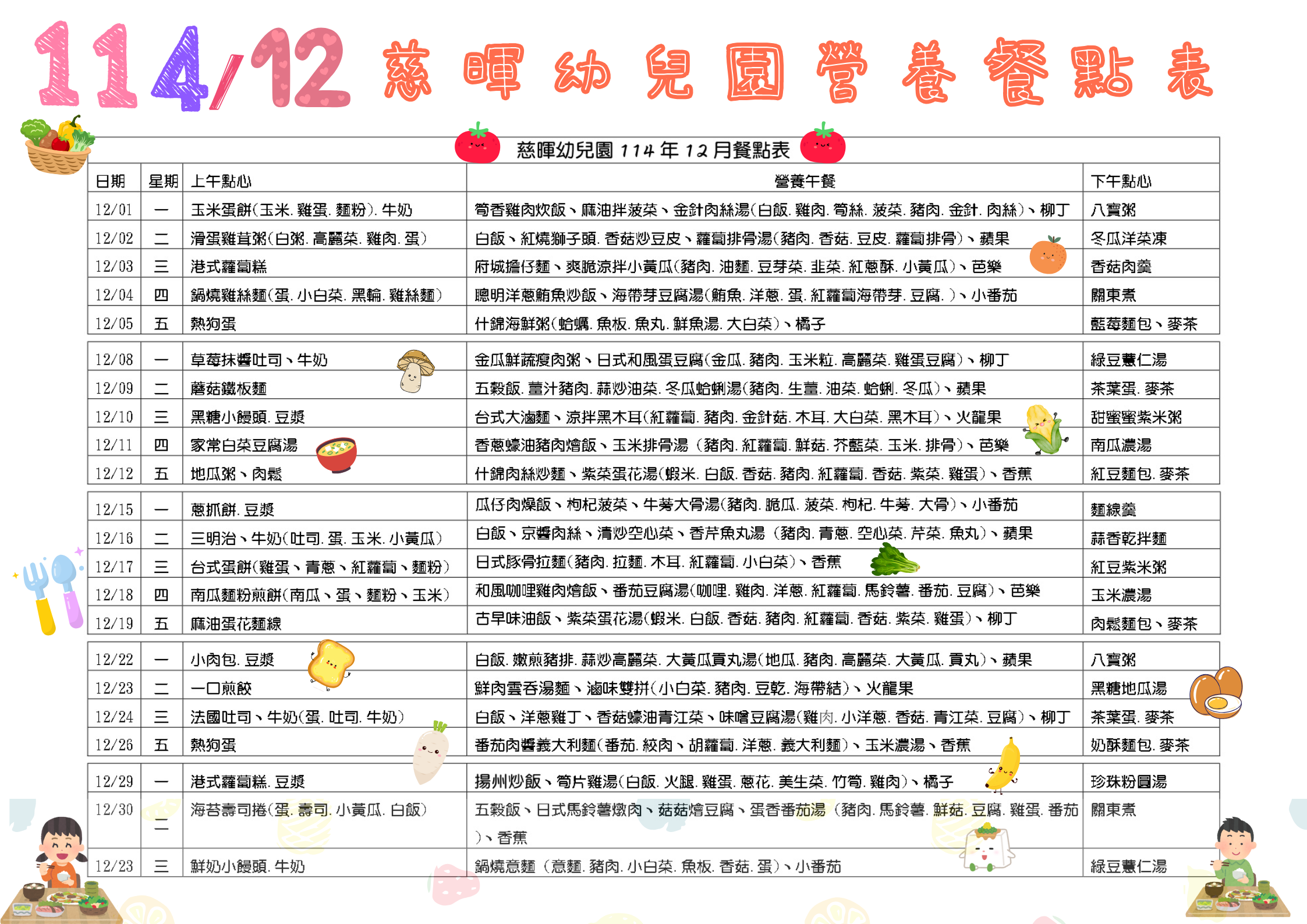 114年12月餐點表
